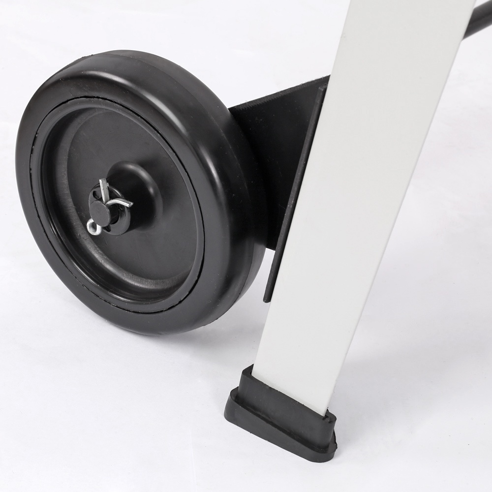 Мобильность: Подставка станка оснащена складными ручками и колесами, что позволяет легко перемещать оборудование по мастерской.
