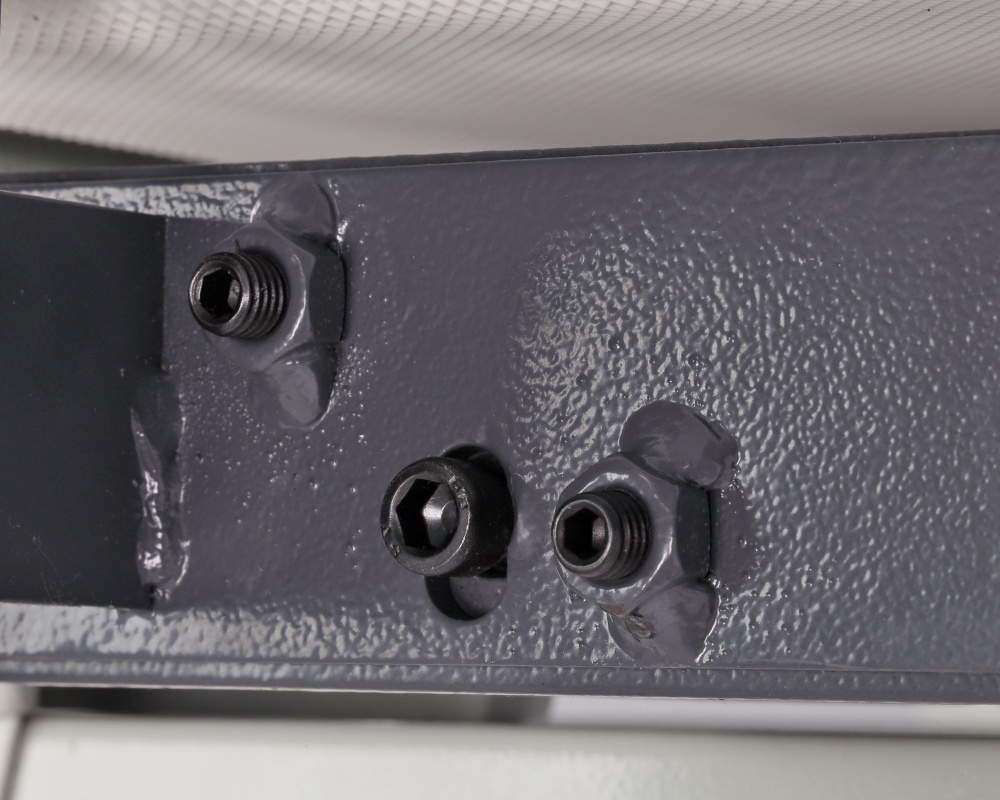 Панель управления интуитивно понятна: на ней расположены пылезащищенный выключатель и регулятор скорости транспортной ленты. Для поддержания чистоты в мастерской и продления срока службы абразива предусмотрен защитный кожух с патрубком диаметром 100 мм для подключения вытяжной установки (стружкоотсоса).
