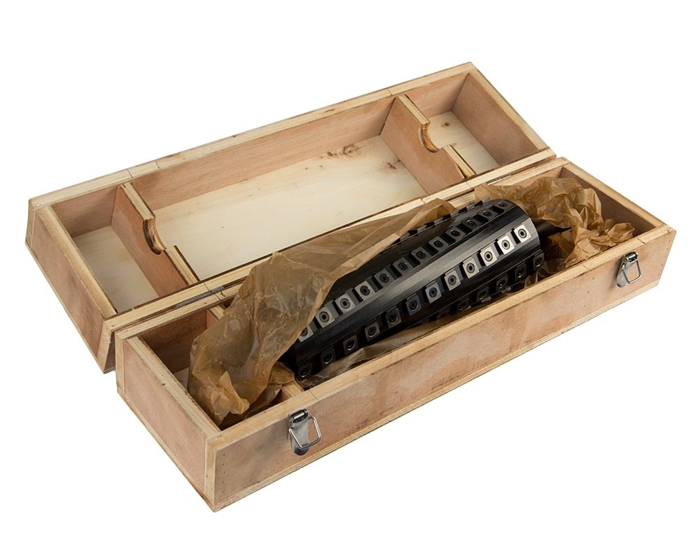 Вставки заточены с четырех сторон, их можно переворачивать при необходимости. Они не подлежат перезатачиванию, но возможна замена после затупления со всех сторон. В результате и срок службы и чистота обработки у валов Helical существенно больше, чем у стандартного вала с 3-мя или 4-мя ножами.