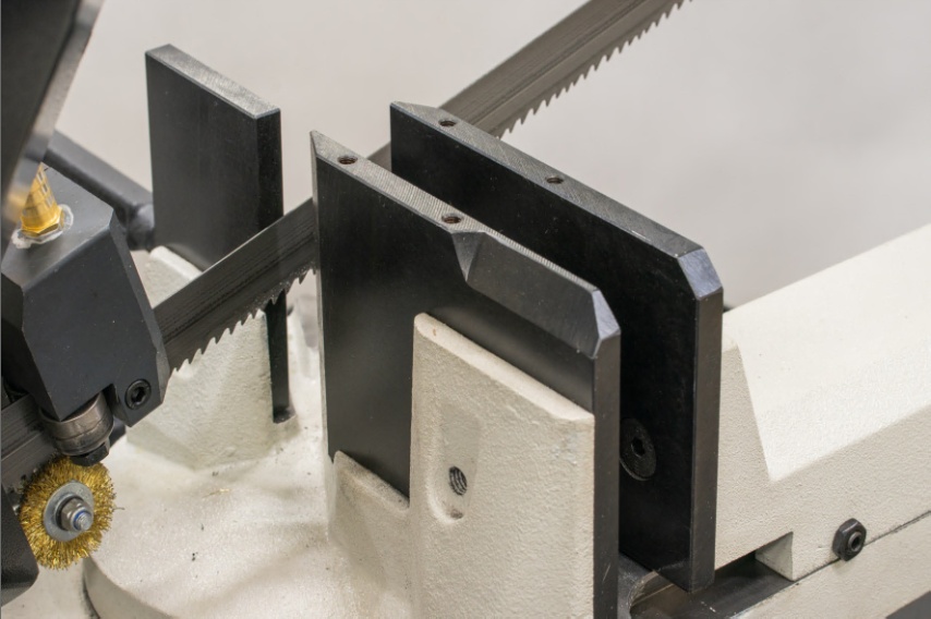 - Фиксация заготовки и её подача осуществляются вручную. В стандартную комплектацию входит система подачи СОЖ, которая повышает производительность и увеличивает ресурс полотна.
