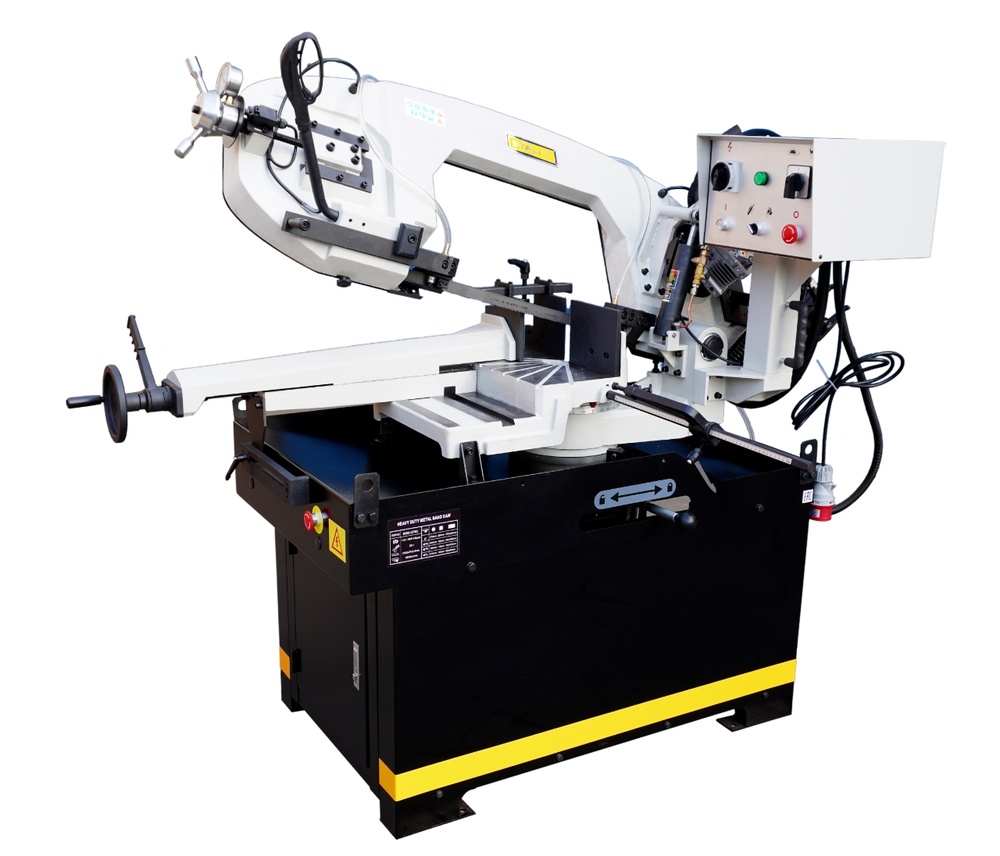 - Фиксация заготовки и её подача осуществляются вручную. В стандартную комплектацию входит система подачи СОЖ, которая повышает производительность и увеличивает ресурс полотна.