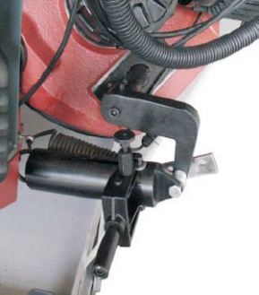 - Модель оснащена быстро регулируемыми тисками для резки под углом — при этом поворачивается рама, а не сама заготовка. Система быстрого отвода подвижной губки позволяет ускорить замену деталей: зажим освобождается без вращения маховика.