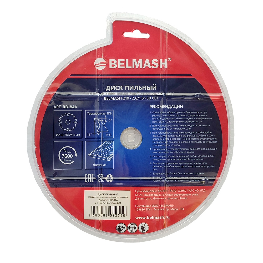 Диск BELMASH 210x2,6/1,6x30 80T соответствует требованиям Технического регламента Таможенного Союза 010/2011 «О безопасности машин и оборудования».