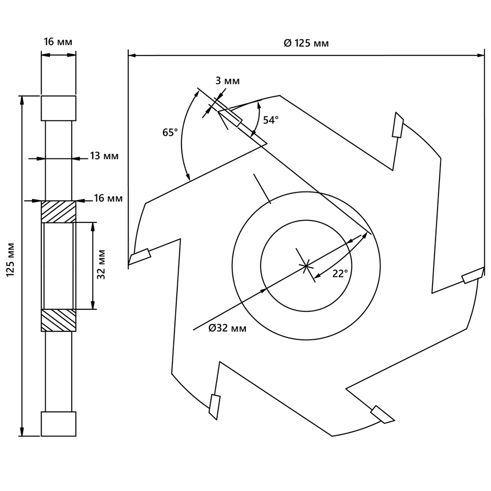 Фреза пазовая (дисковая) BELMASH 125х32х16 мм применяется для выработки прямоугольных пазов, выборке четвертей и фрезеровании вдоль волокон в заготовках из древесины различных пород. Максимальная частота вращения – 6200 об./мин.