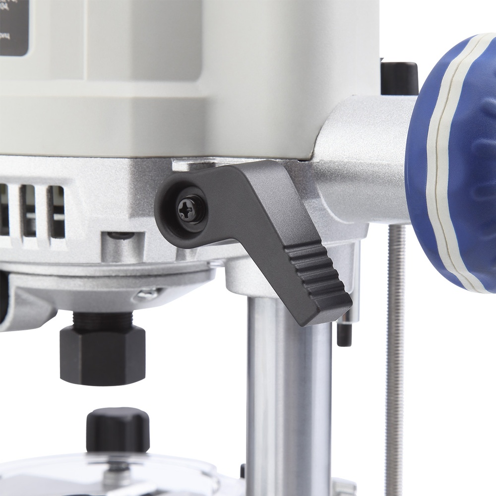 Стационарный режим: Модель полностью подготовлена для установки в стол BELMASH RT650L. В комплекте идет специальная ручка, позволяющая регулировать вылет шпинделя прямо через столешницу (функция лифта).