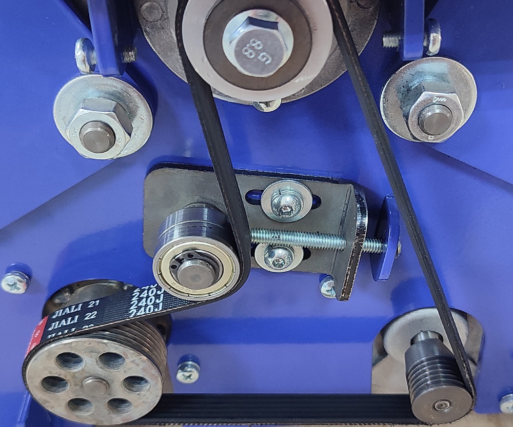 Трехножевой стальной вал: Несмотря на компактность, на станке установлен полноценный стальной вал с тремя ножами (длина 154 мм), что характерно для профессиональных серий.