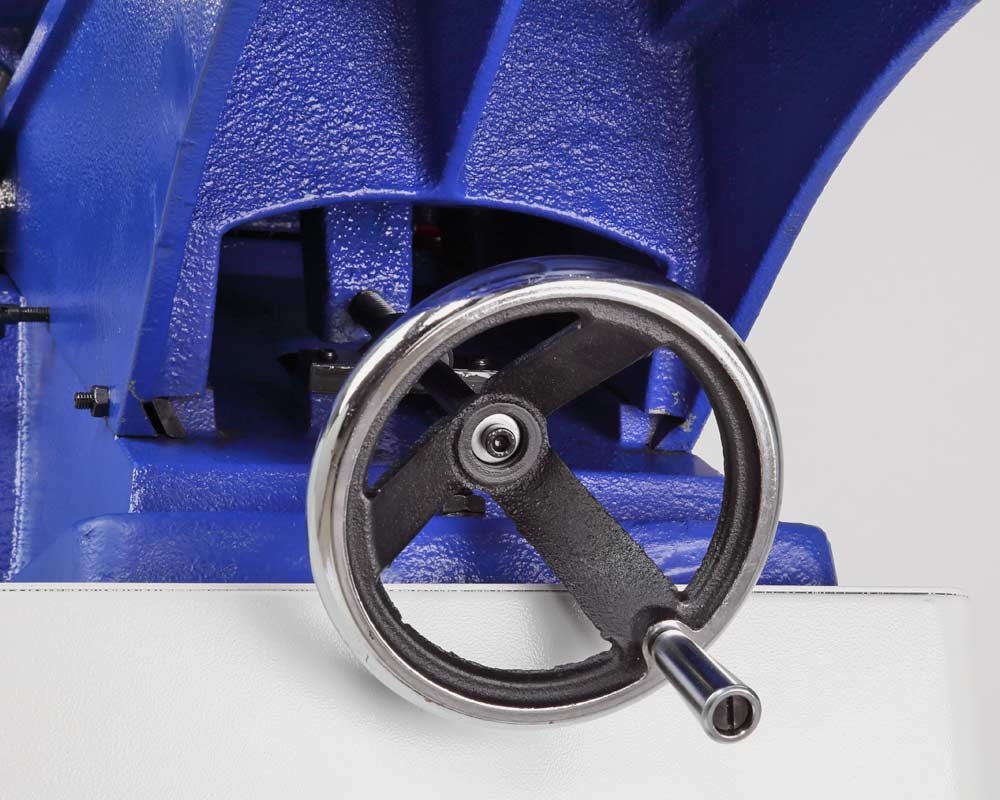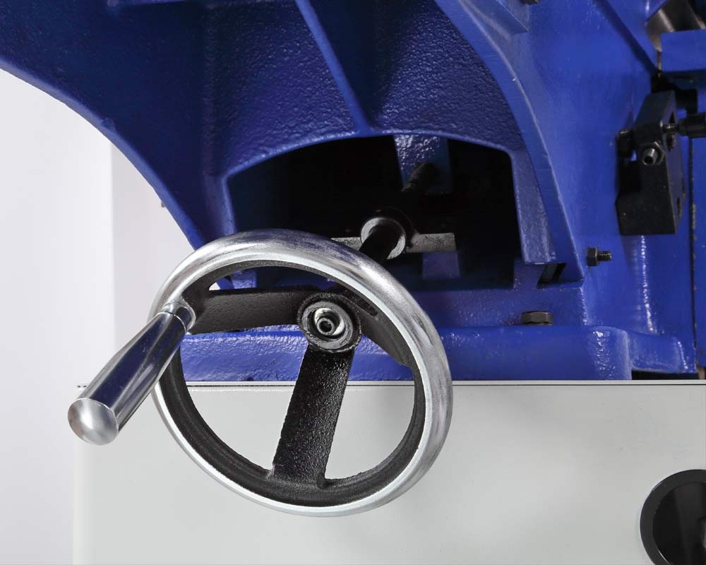 Чугунная литая конструкция: Столы, параллельный упор, каретка и основание выполнены из высококачественного чугуна. Это обеспечивает стабильность геометрии и высокую массу станка, необходимую для гашения инерционных нагрузок.