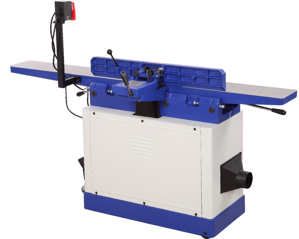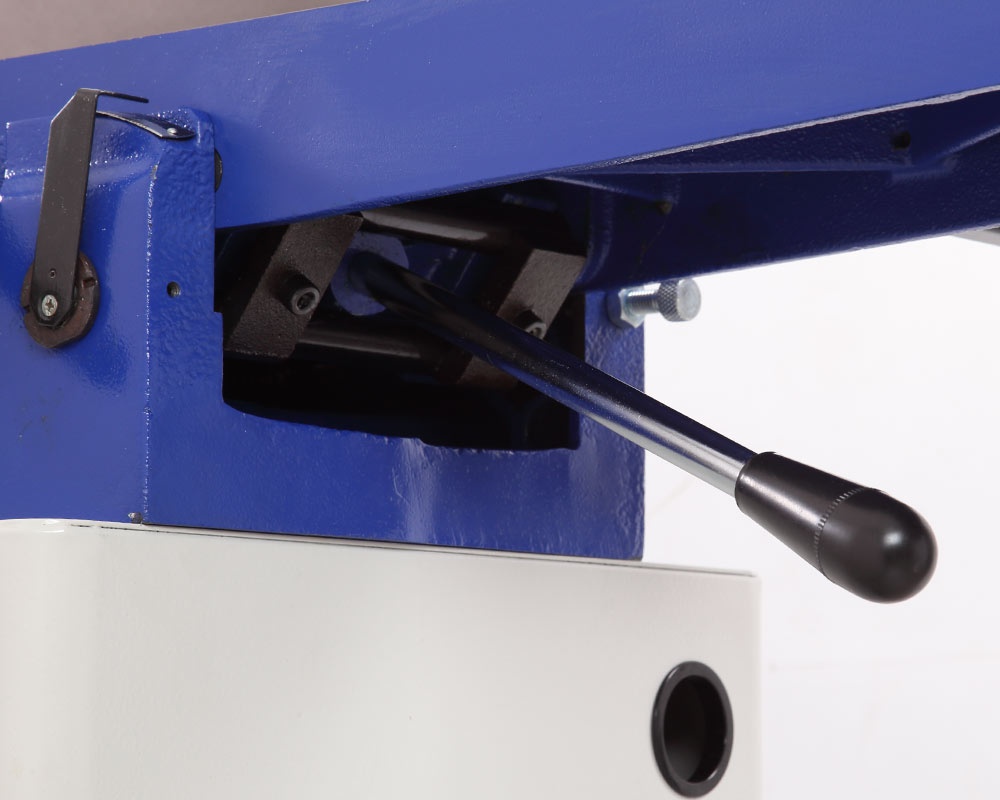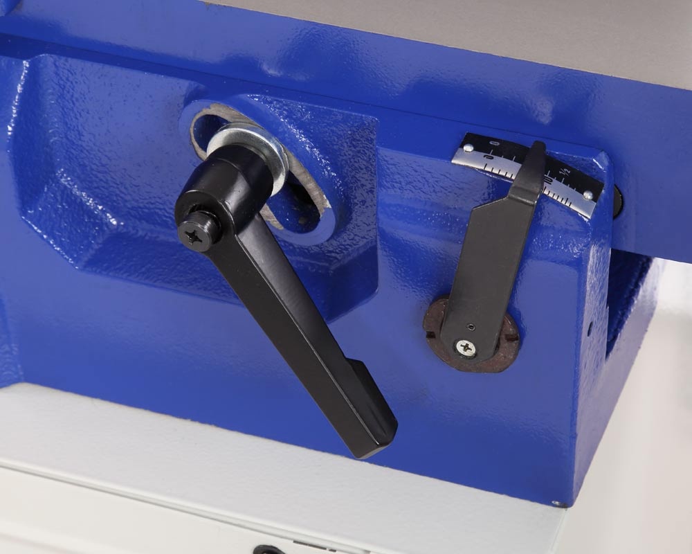 Удлиненные чугунные столы: Общая длина столов составляет 1960 мм (загрузочный — 1105 мм, приемный — 793 мм). Такая длина гарантирует идеальную прямолинейность фугования даже для очень габаритных и тяжелых деталей.