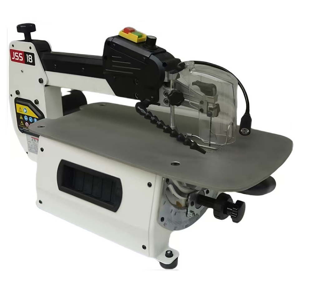 - Станок рассчитан на регулярную и продолжительную работу. Он поставляется с завода в почти готовом виде, требуется лишь минимальная сборка. Частота хода регулируется в диапазоне 550–1500 движений в минуту. Оператор вручную подаёт заготовку вдоль стола, направляя пилку по внешнему контуру или через внутренние отверстия. Процесс пиления на JSS-18 считается предварительным и, как правило, требует последующей шлифовки.