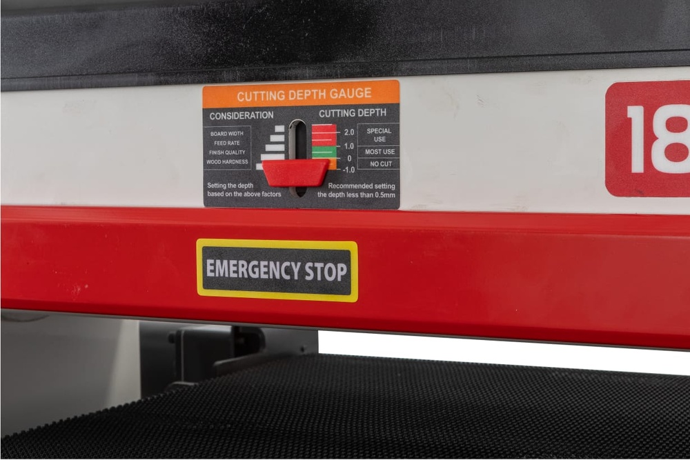 - Для безопасности станок оснащён кнопкой полной аварийной остановки, мгновенно отключающей и барабан, и транспортер. Это решение раньше встречалось только в индустриальных моделях.