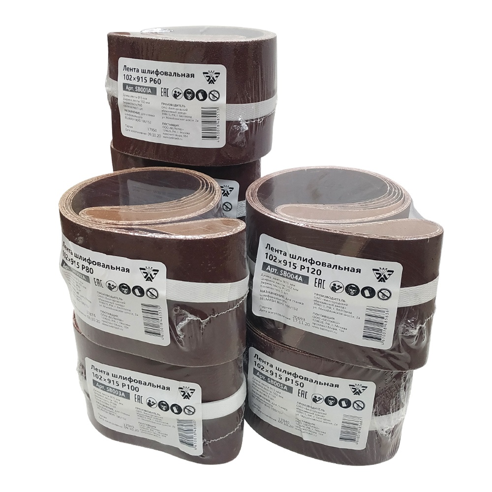 Шлифовальная бесконечная лента длиной 915 мм, шириной 102 мм, зернистостью P60 применяется на ленточно-дисковых шлифовальных станках BELMASH BDG 100/152, BDG 100/152L.