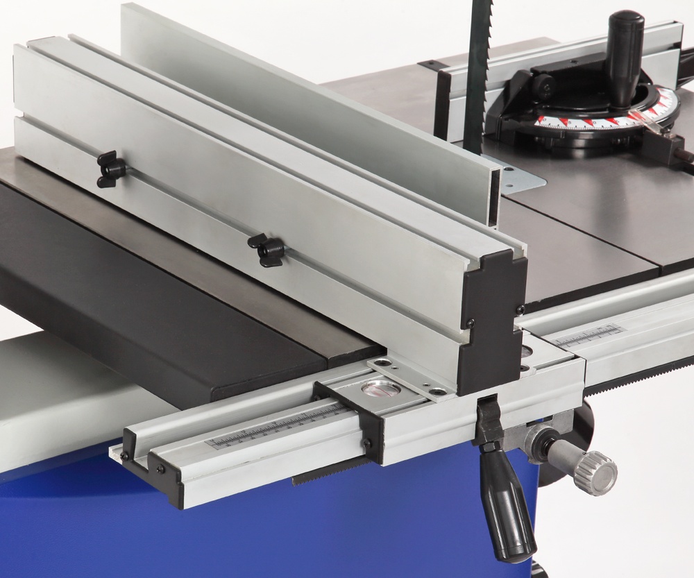 Параллельный упор: Оснащен эксцентриковым зажимом и системой микроподстройки. Профиль упора можно устанавливать как вертикально, так и горизонтально. Направляющая снабжена двойной шкалой (мм/дюйм).