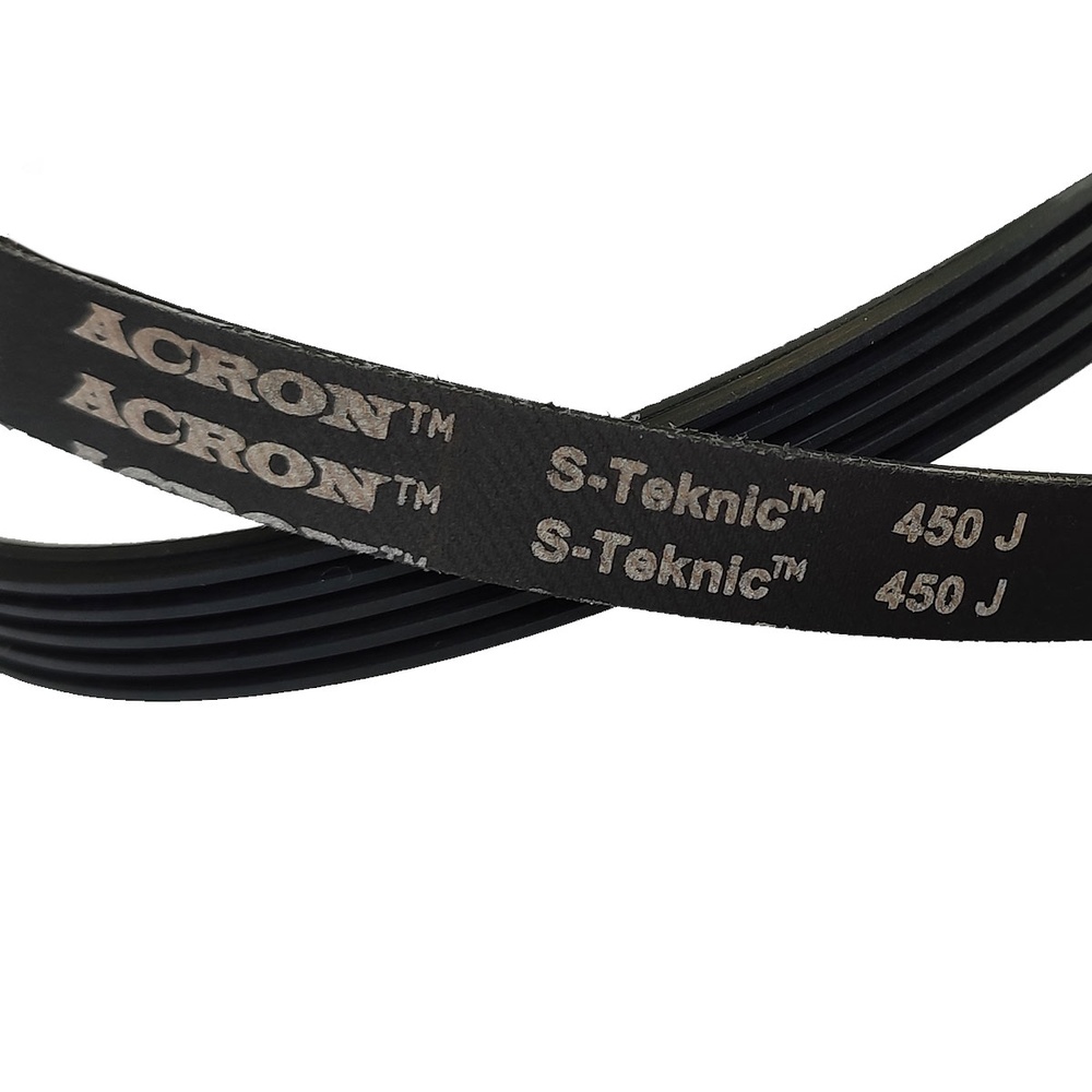 Ремень 450J имеет прочное и гибкое строение, состоящее из нескольких продольных ребер (поликлиновый профиль), что обеспечивает ему высокую прочность и долговечность.