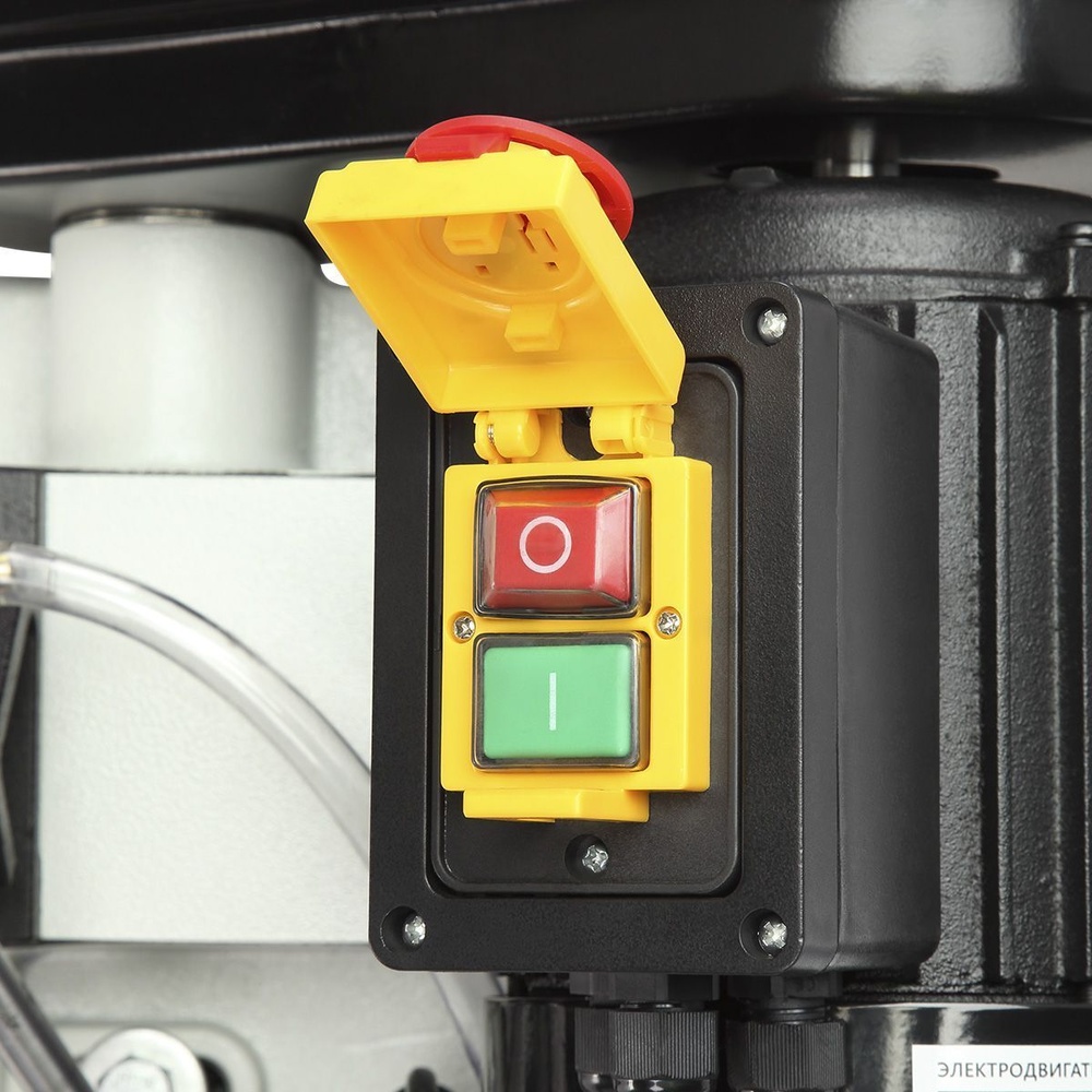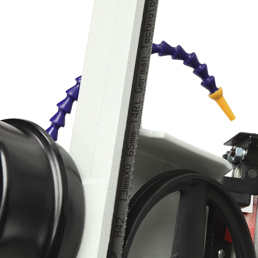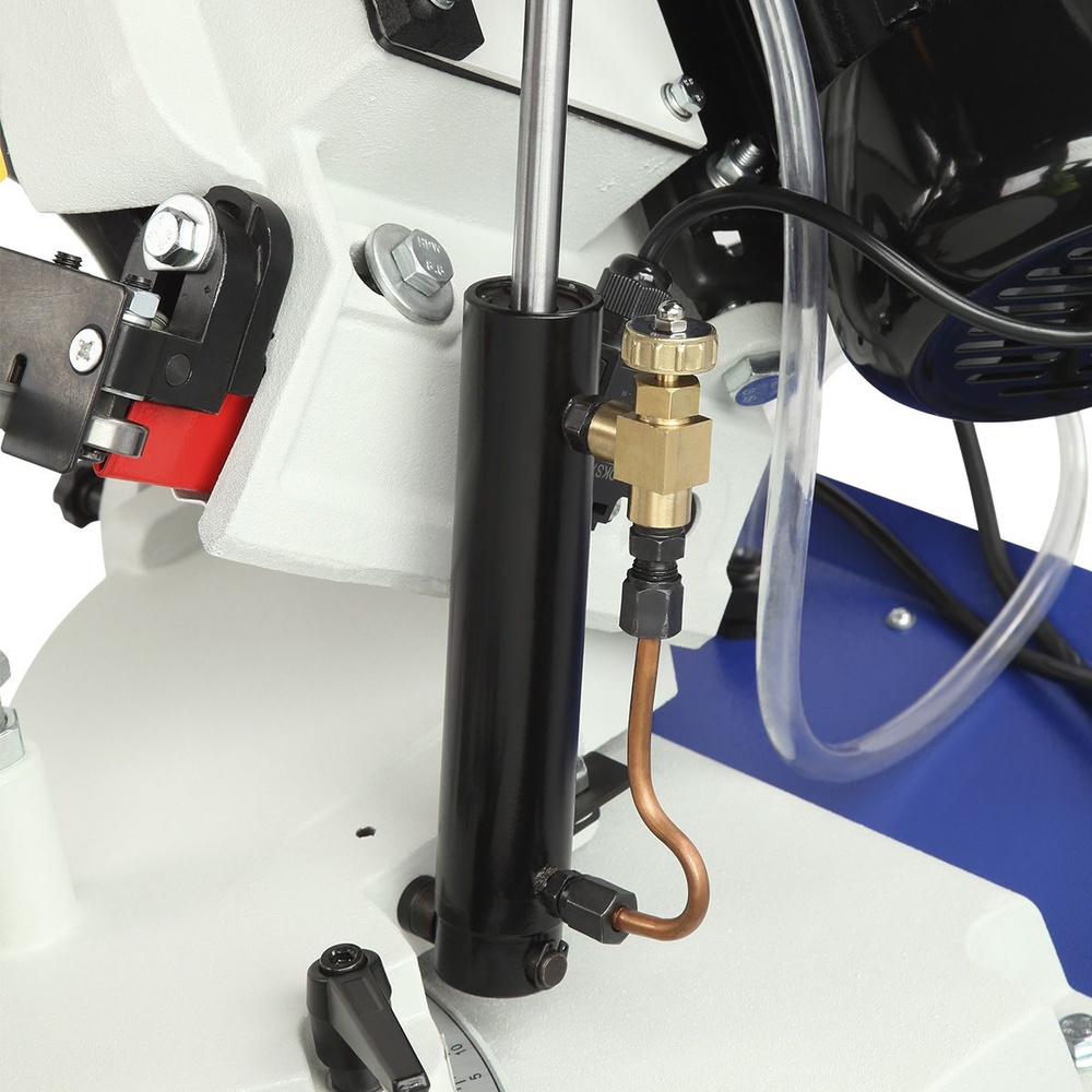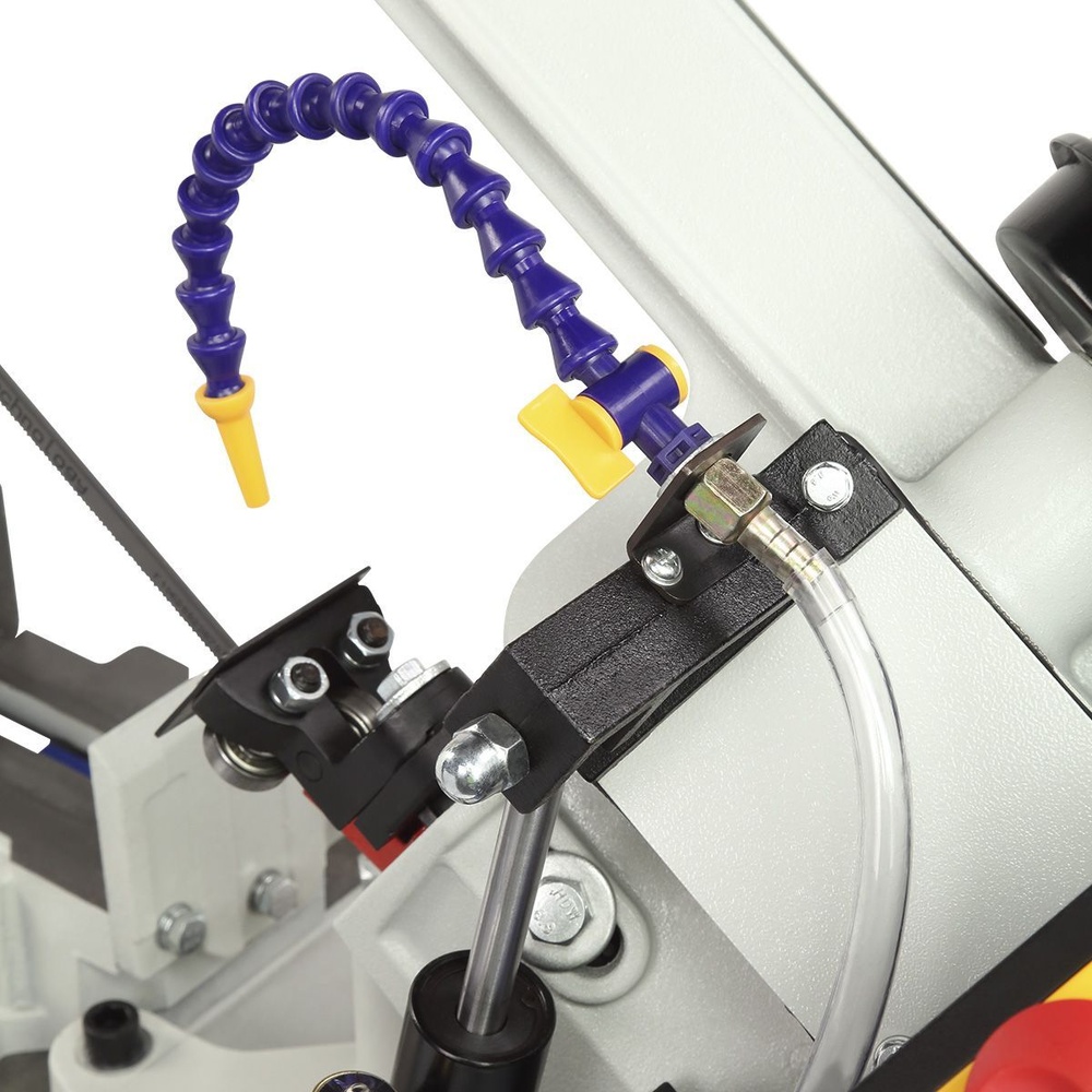 Система охлаждения (СОЖ): Станок оборудован системой подачи охлаждающей жидкости с регулировочным краном, что предотвращает перегрев полотна и заготовки, значительно продлевая ресурс оснастки.