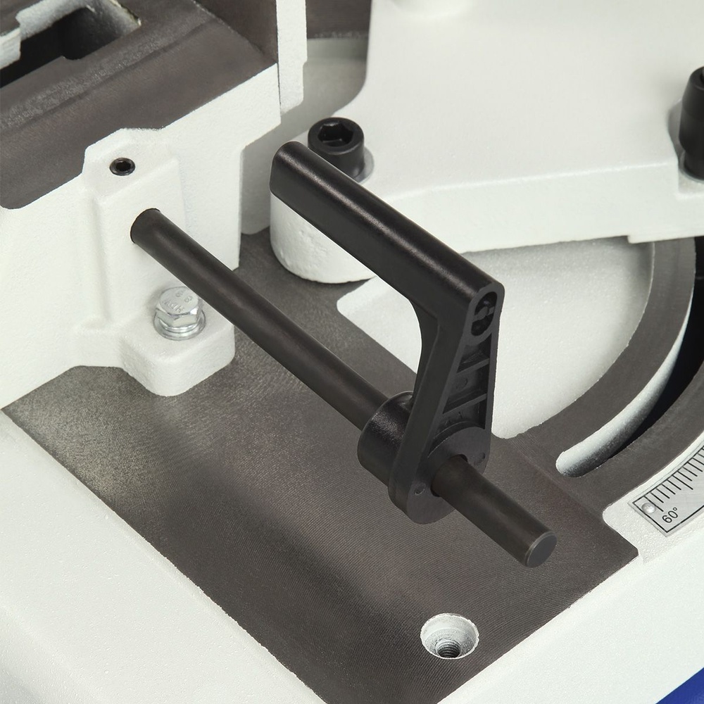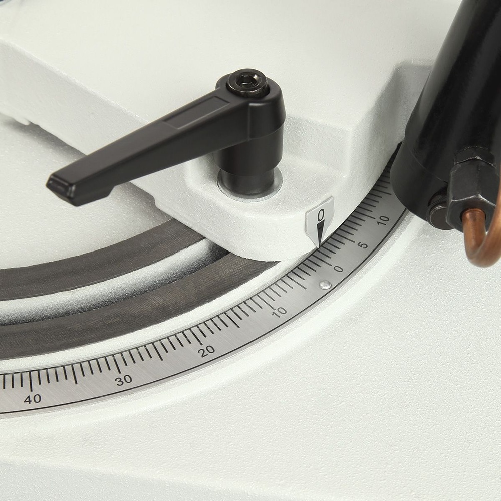 Универсальный рез под углом: Массивная чугунная рама поворачивается в диапазоне от -60° до +45°. Настройка производится по точной градуированной шкале.