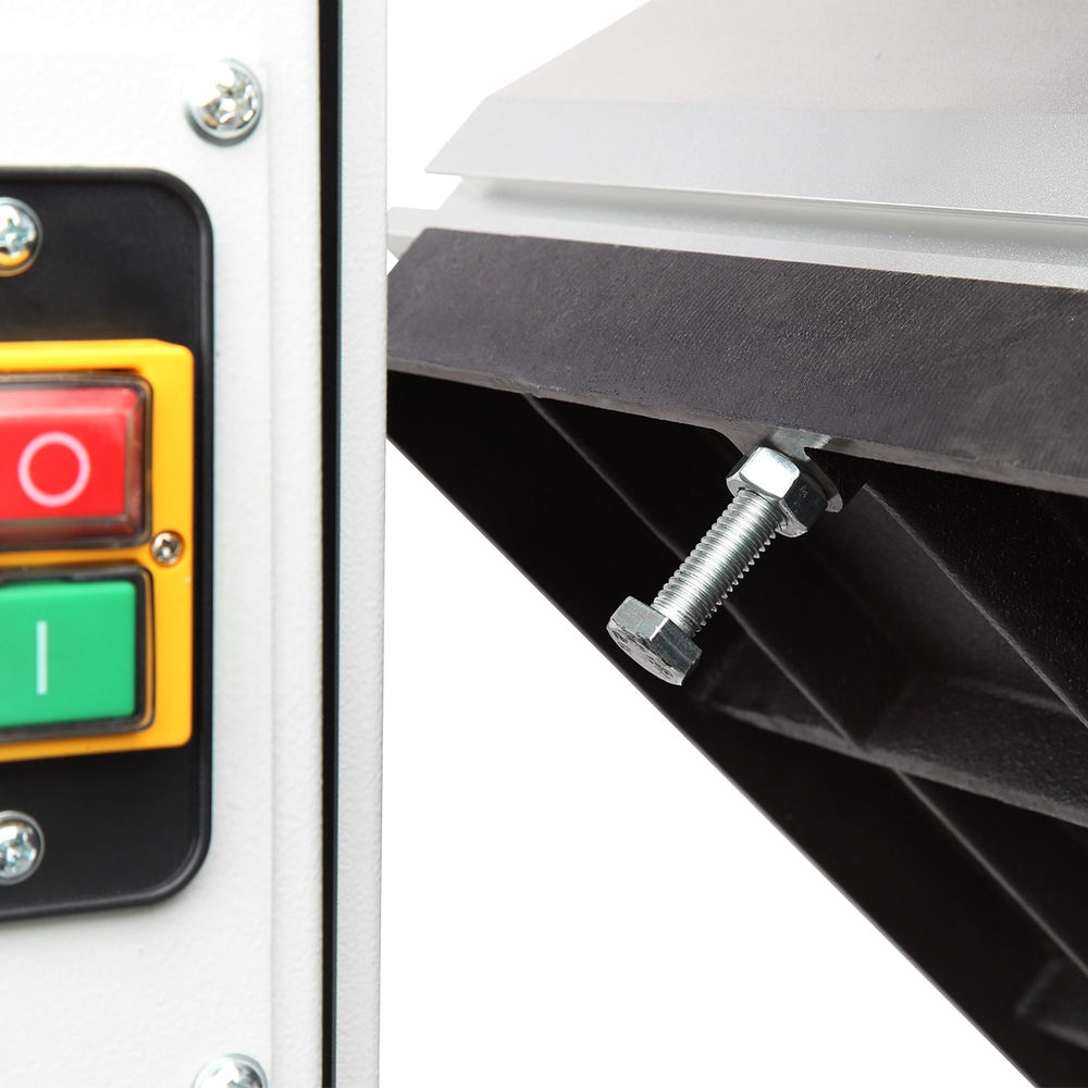 Сердцем станка является мощный асинхронный двигатель на 1800 Вт, S1, который поддерживает стабильные обороты и температуру при длительной работе. Концевой выключатель блокирует запуск двигателя при открытых защитных панелях, обеспечивая безопасность оператора и предотвращая случайный пуск станка.