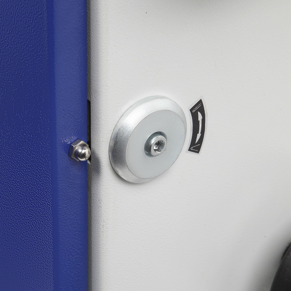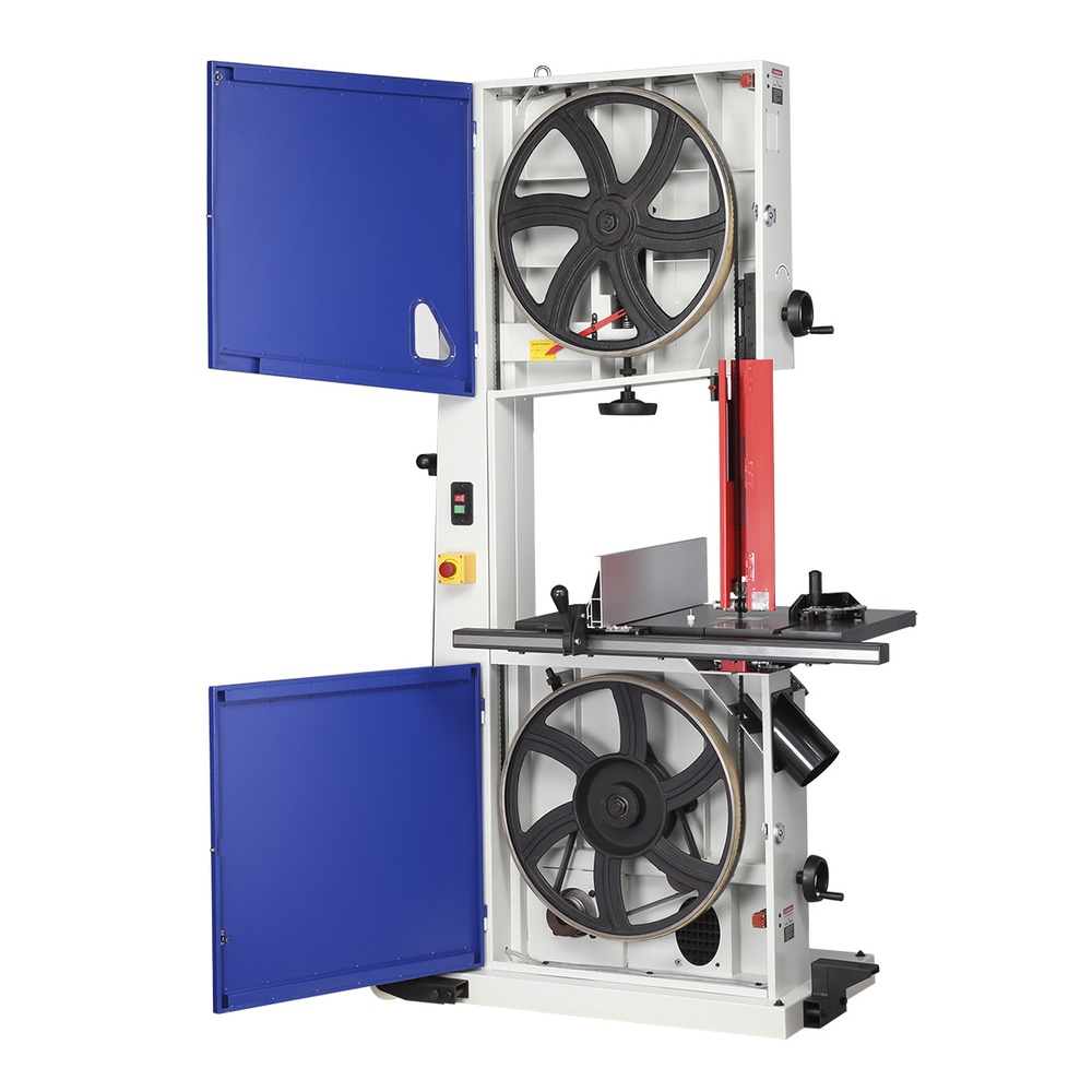 Качество и безопасность реза обеспечивает продуманная система направляющих пильного полотна. Верхний узел с маховиком быстро регулируется по высоте. Боковые опоры и задняя направляющая точно настраиваются шестигранными ключами для минимального зазора и исключения увода полотна. Натяжение контролируется по индикатору в смотровом окне.
