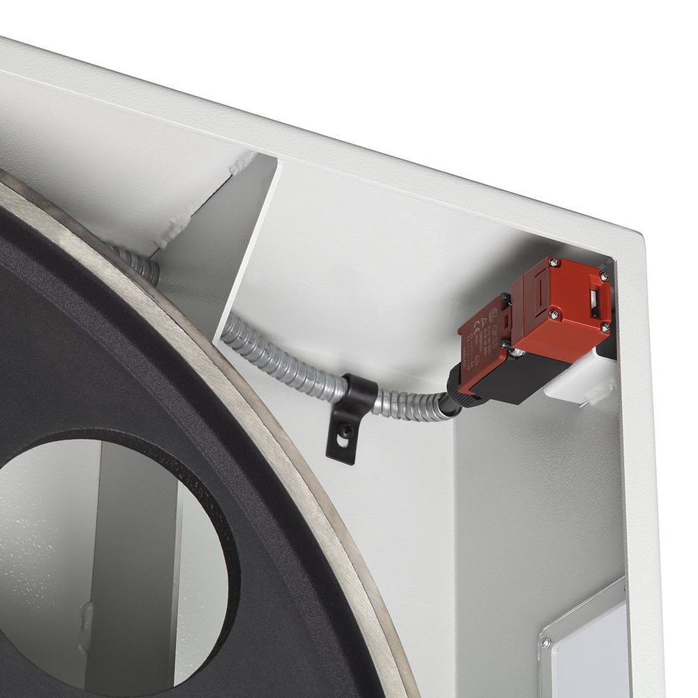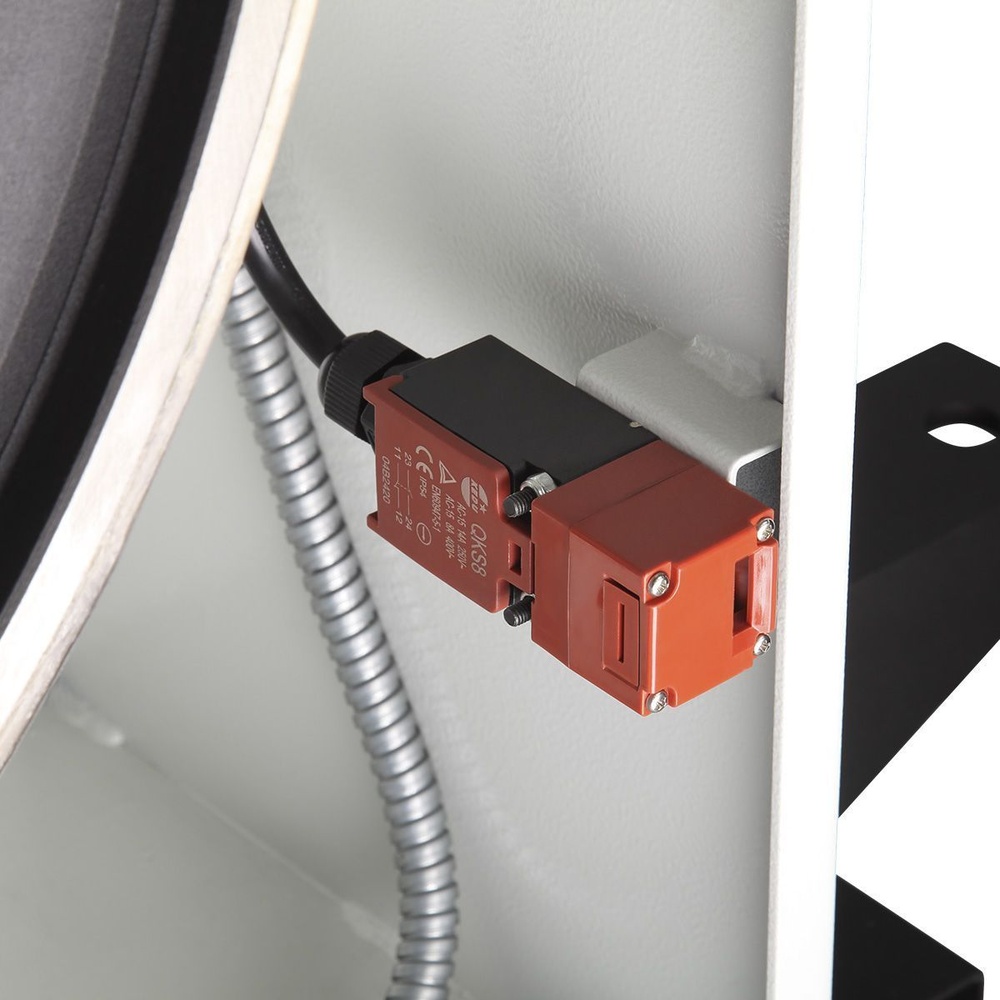 Сердцем станка является мощный асинхронный двигатель на 4 000 Вт, рассчитанный на длительную работу в режиме S1. Питание осуществляется через электромагнитный контактор, это подключение является эффективным и максимально безопасным. Также на станке установлены аварийная кнопка остановки двигателя и система блокировки с концевыми выключателями, которые предотвращают запуск при открытых защитных панелях.