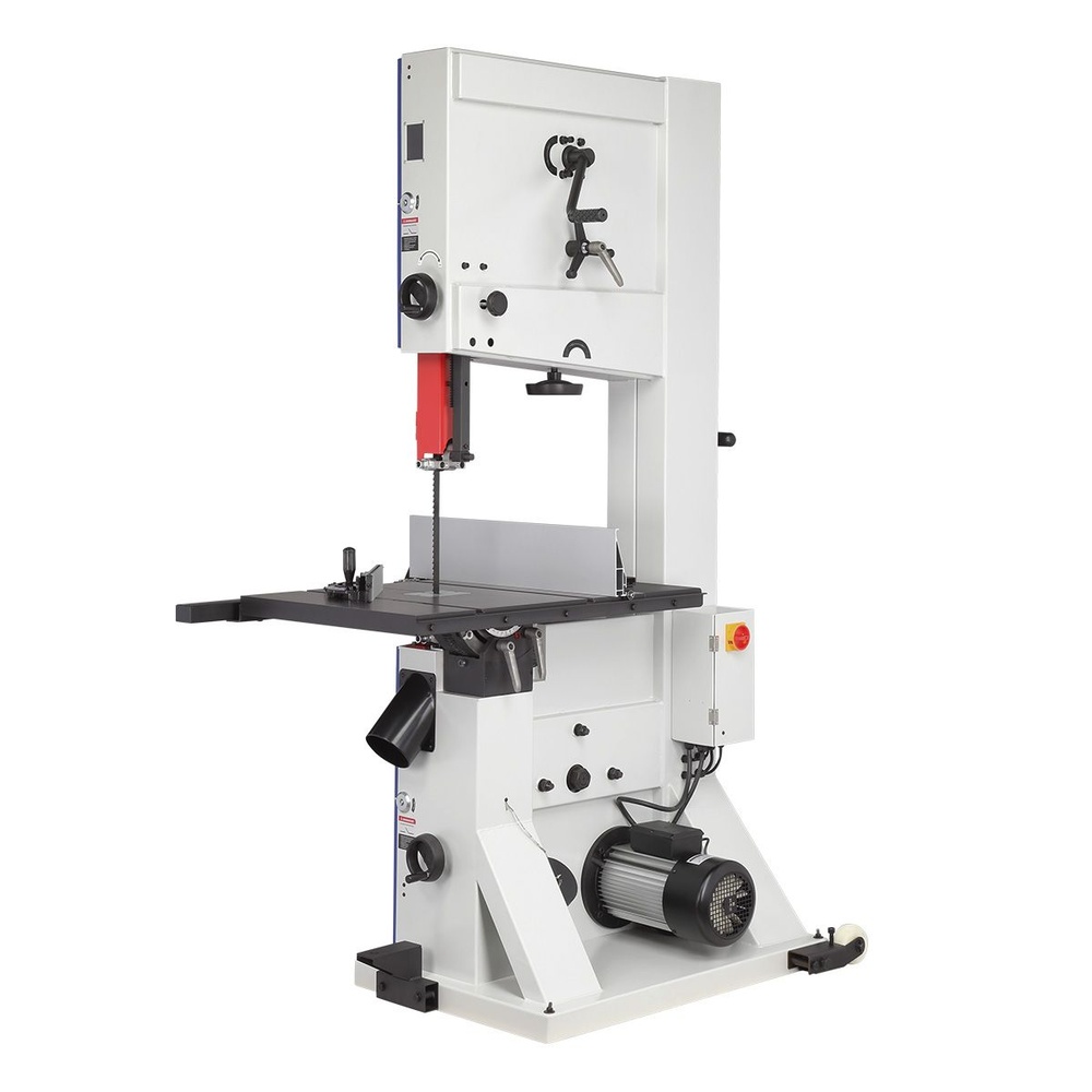 На станке используются пильные полотна длиной 4 590 мм и шириной от 19 до 38 мм, что позволяет осуществлять как прямолинейный, так и фигурный распил. Ослабление натяжения полотна осуществляется специальным рычагом в одно движение. Шкивы выполнены из чугуна, диаметр - 610 мм.