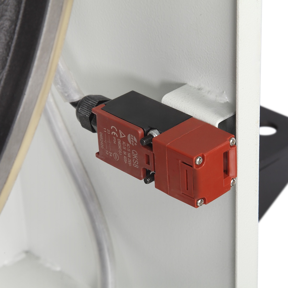 Сердцем станка является мощный асинхронный двигатель на 4500 Вт, рассчитанный на длительную работу в режиме S1. Станок оснащен аварийной кнопкой остановки и системой блокировки с концевыми выключателями, которые предотвращают запуск при открытых защитных панелях, обеспечивая полную безопасность оператора.