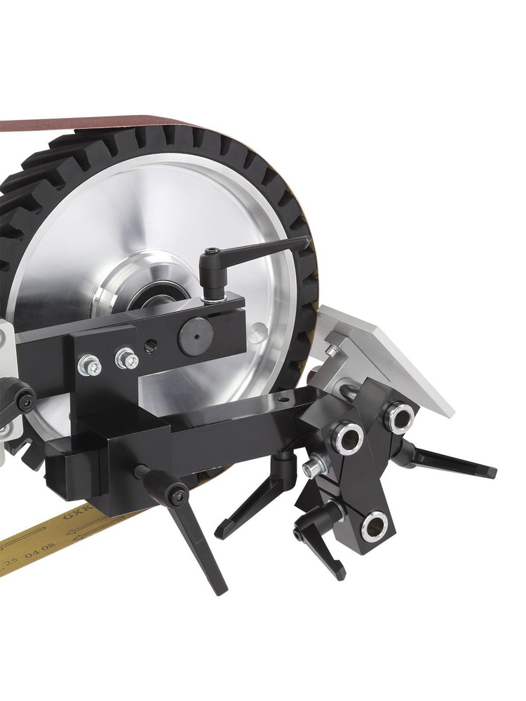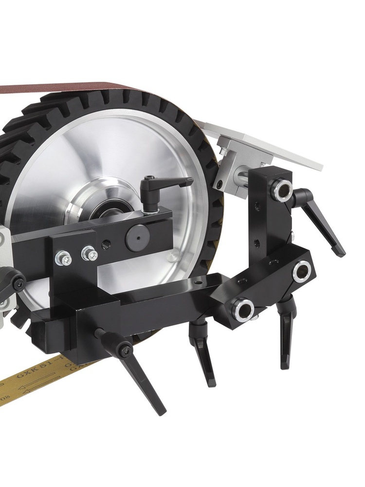 Комплектация: В стандартный набор уже включены три бесконечные ленты длиной 1829 мм (зернистость 100, 180, 240 grit), контактный ролик, поворотная консоль и контуровочные узлы.