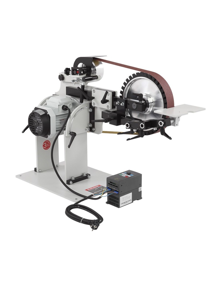 Частотное регулирование и реверс: Блок управления позволяет плавно менять скорость ленты от 0 до 28 м/с и переключать направление вращения (реверс). Это необходимо для деликатной обработки дерева (без прижогов) и эффективного съема металла.