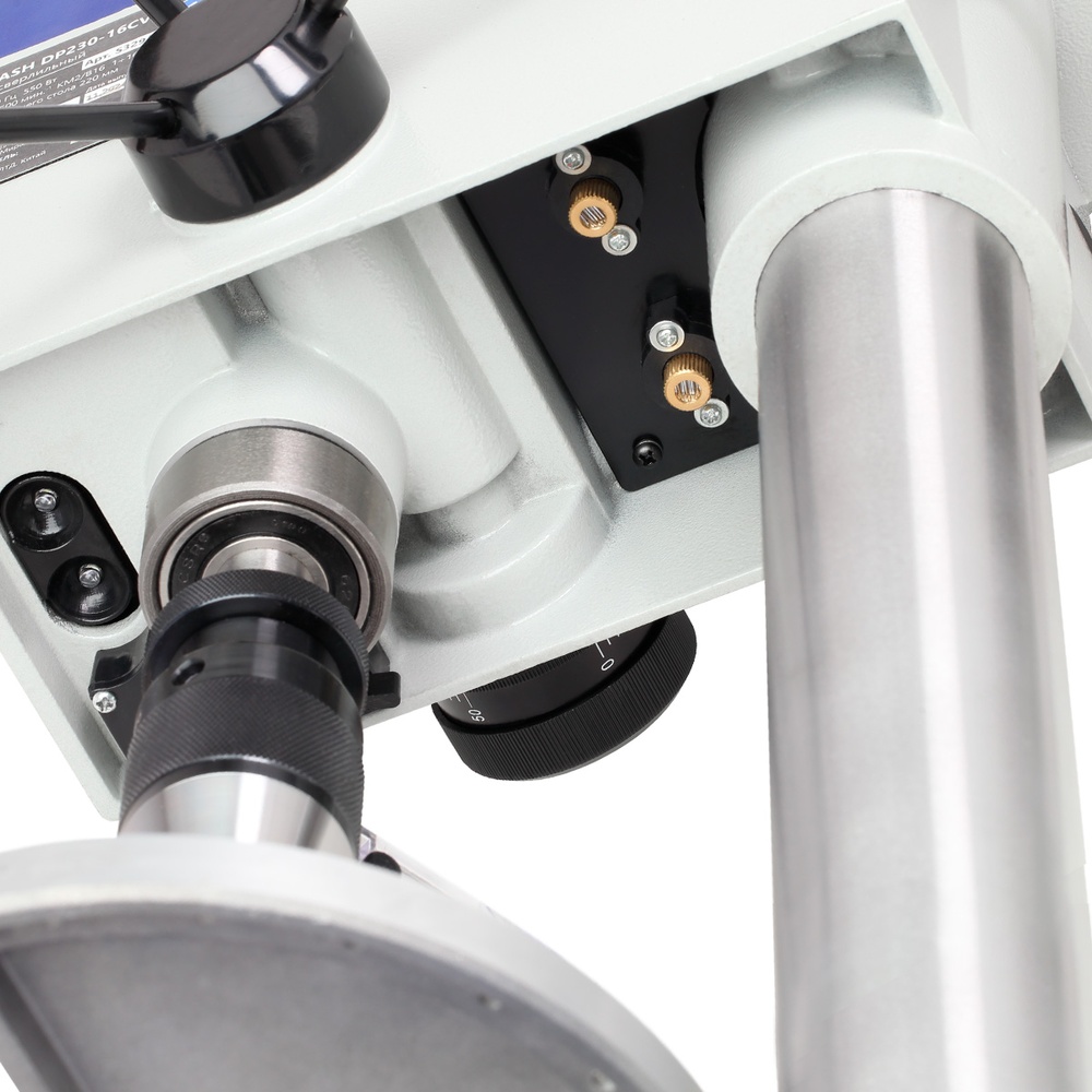 Стабильность конструкции: Массивное основание из литого чугуна эффективно гасит вибрации, обеспечивая плавный ход сверла.