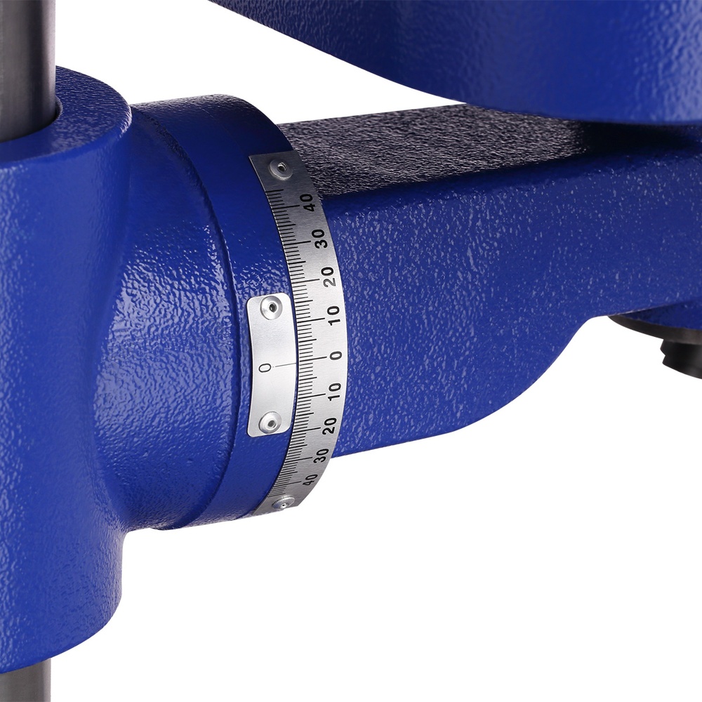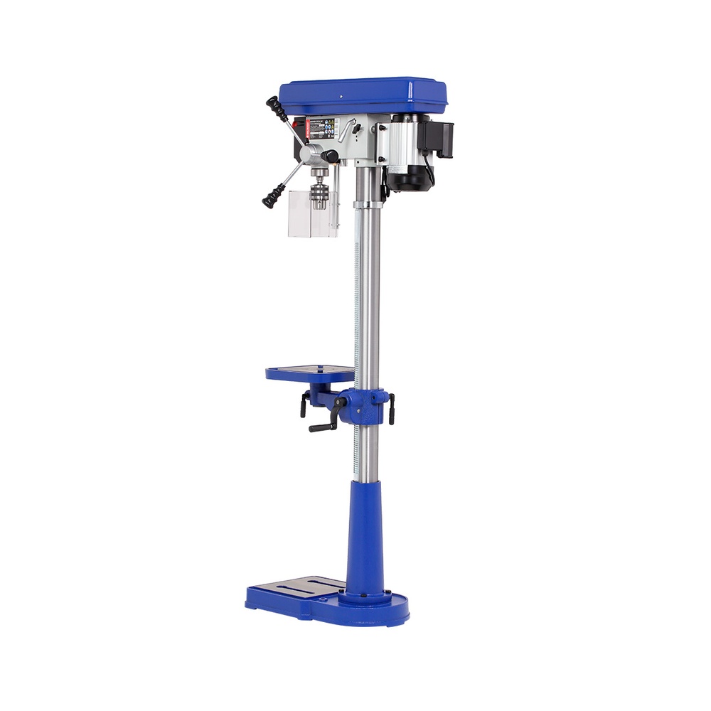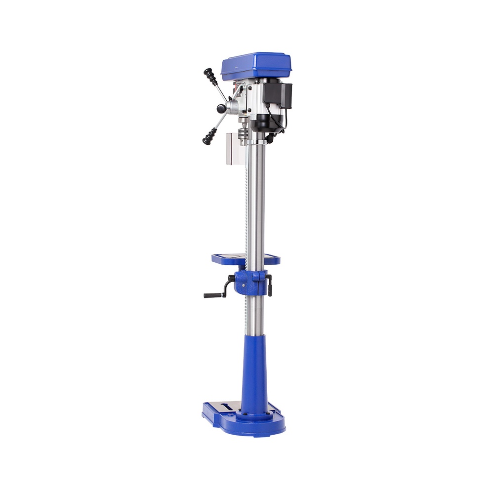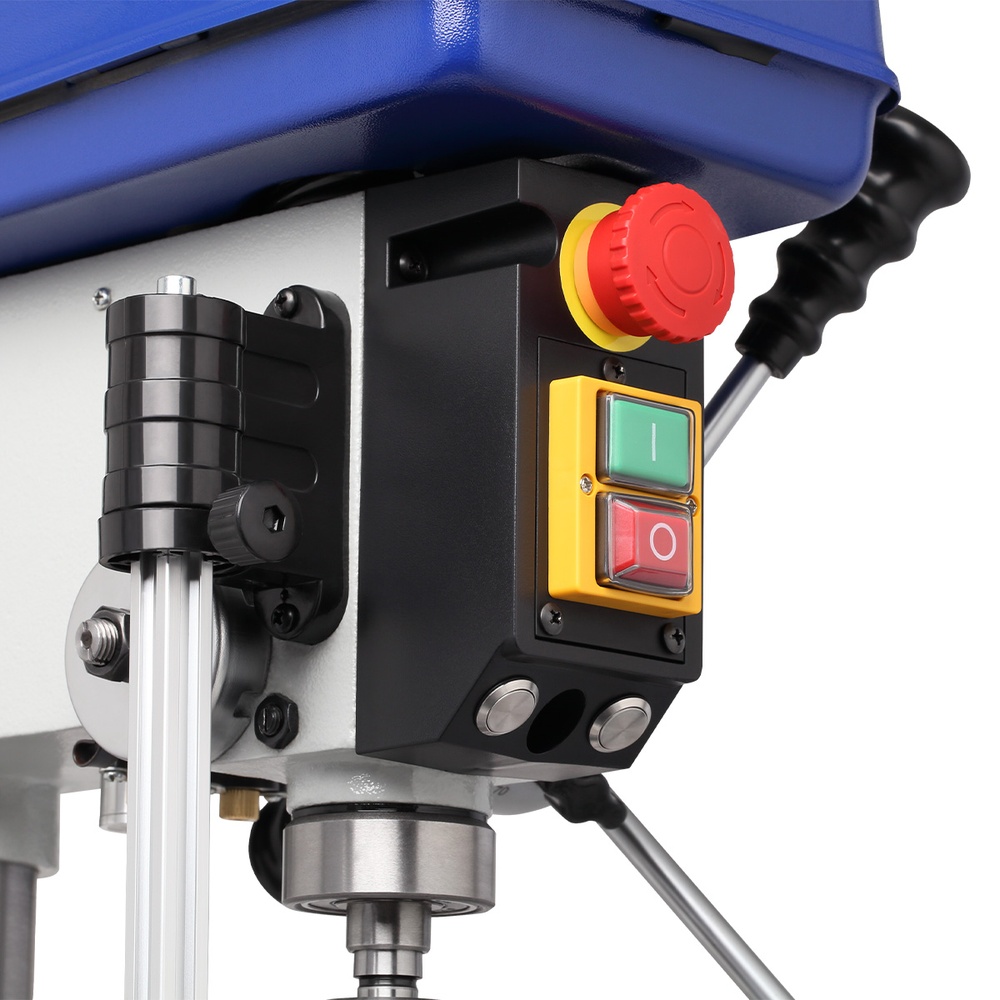 Ход пиноли составляет 80 мм. Настройка глубины сверления производится с помощью понятной шкалы на рукоятке. Трехлучевой рычаг подачи оснащен удобными наконечниками, обеспечивающими плавный ход инструмента. Ключевой патрон надежно фиксирует оснастку с хвостовиком от 1 до 16 мм.