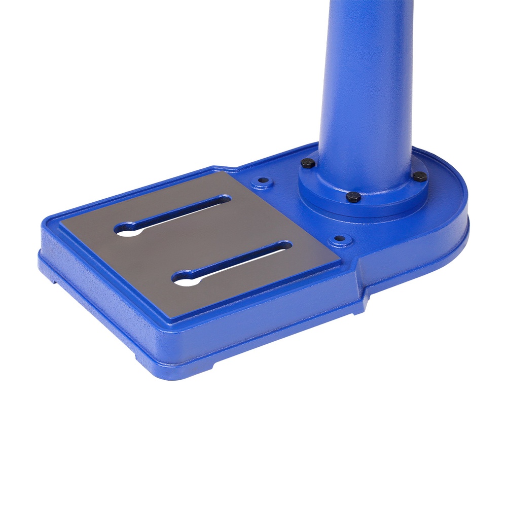 Благодаря чугунной станине станок сохраняет стабильность даже при нагрузках. Предусмотрены монтажные отверстия для жесткой фиксации оборудования к верстаку или полу.