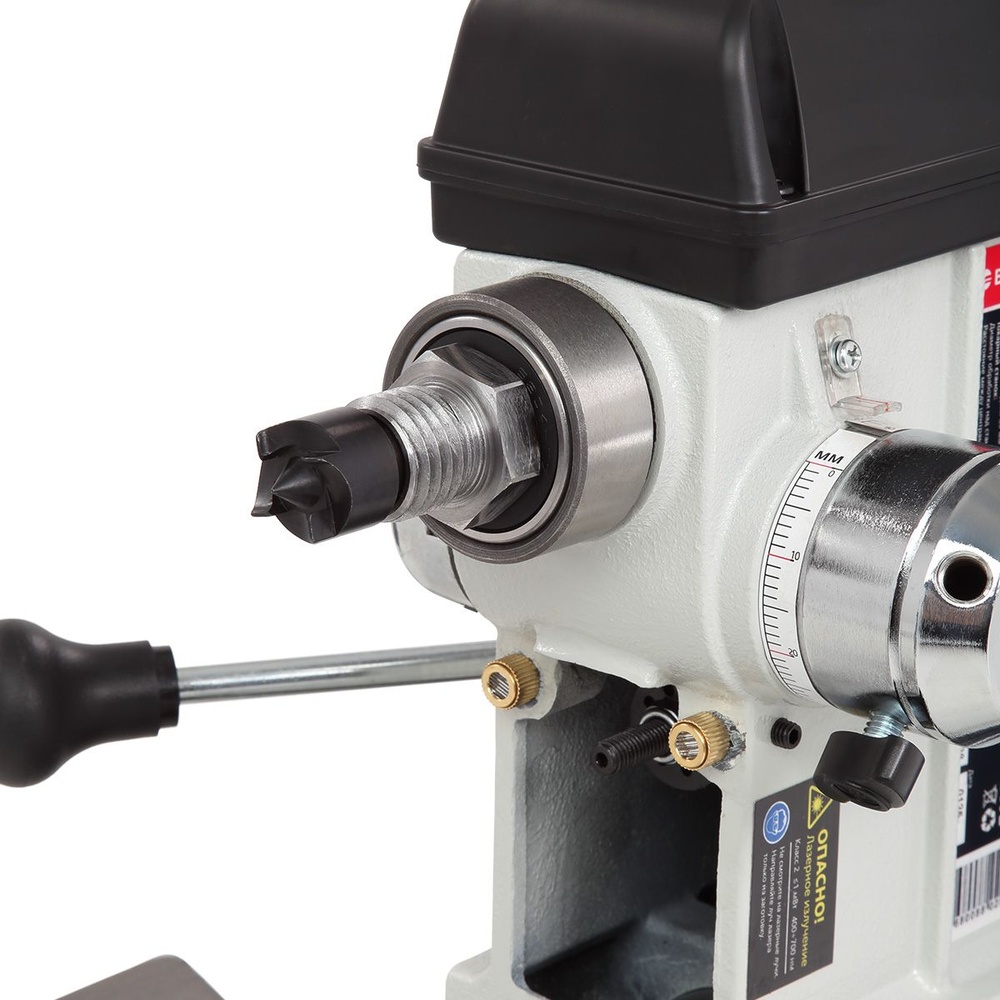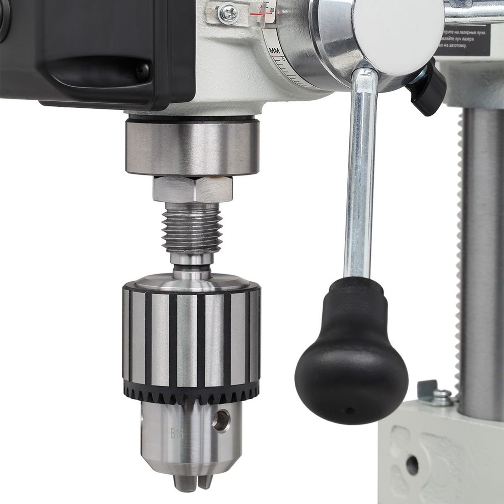Полная комплектация: Станок поставляется с лазерным указателем, патроном и набором необходимых ключей.