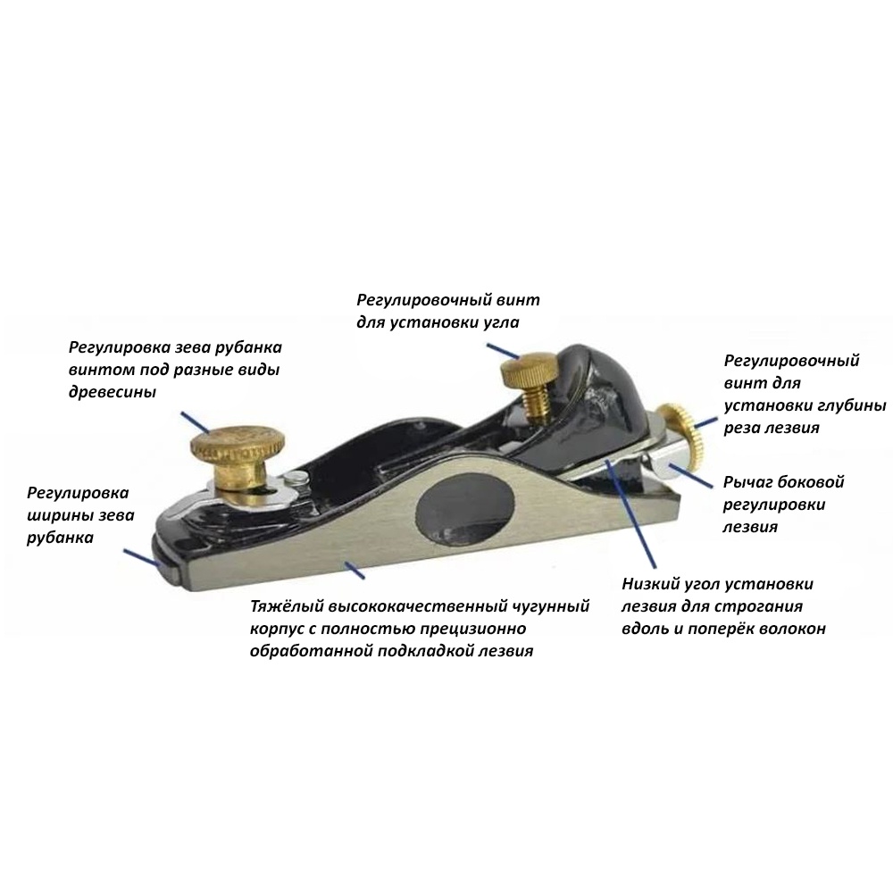 - Этот оборотный (лезвие стоит заточкой вверх) рубанок с лезвием установленым под углом 12°, предназначен для работы по торцам заготовок и тонкой резки древесины.