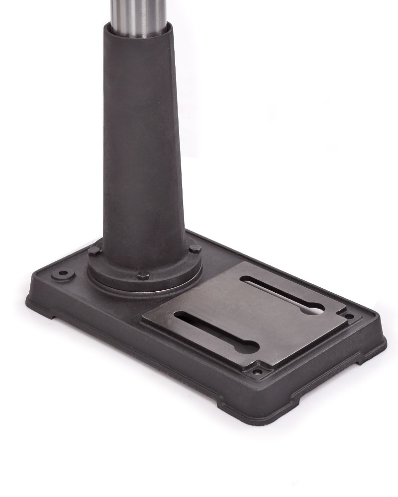 Надежная конструкция: Опора, стол и корпус головки выполнены из чугуна. Высота станка (1630 мм) и большой вылет шпинделя позволяют обрабатывать заготовки толщиной до 740 мм на столе и до 1300 мм на основании.