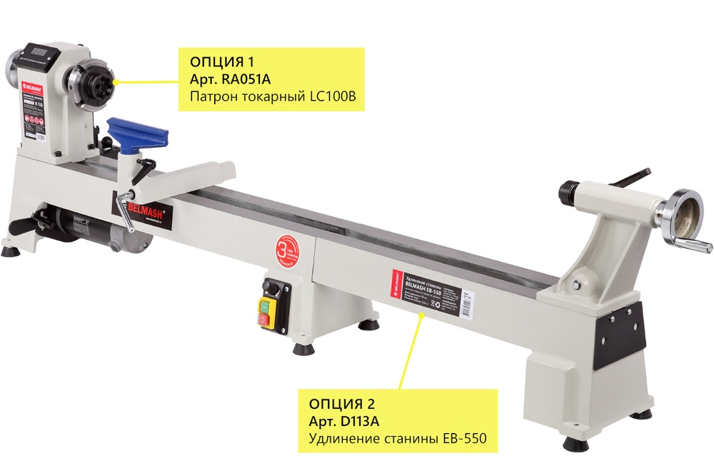 Возможность апгрейда: у нас вы можете приобрести удлинитель станины BELMASH EB-550 для работы с крупногабаритными деталями.