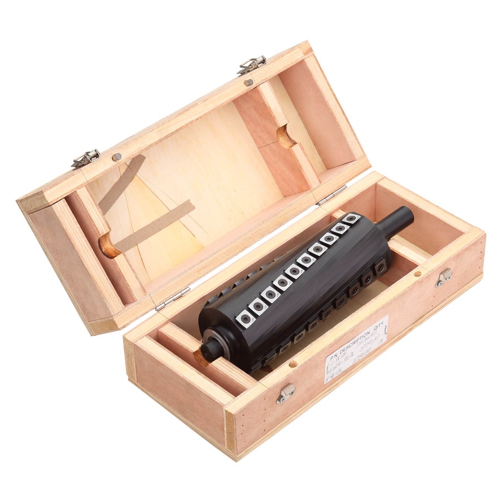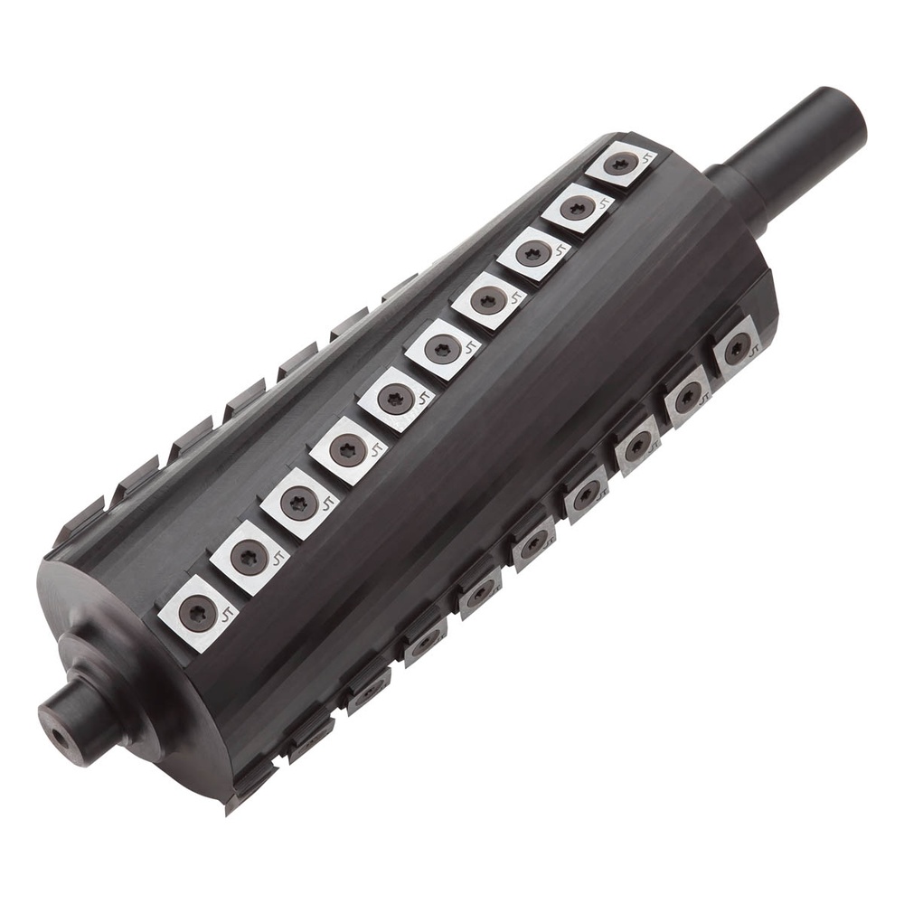 Вставки заточены с четырех сторон, их можно переворачивать при необходимости. Они не подлежат перезатачиванию, но возможна замена после затупления со всех сторон. В результате и срок службы и чистота обработки у валов Helical существенно больше, чем у стандартного вала с 3-мя или 4-мя ножами.