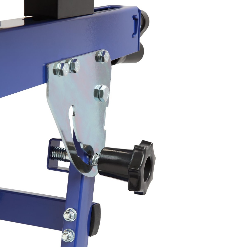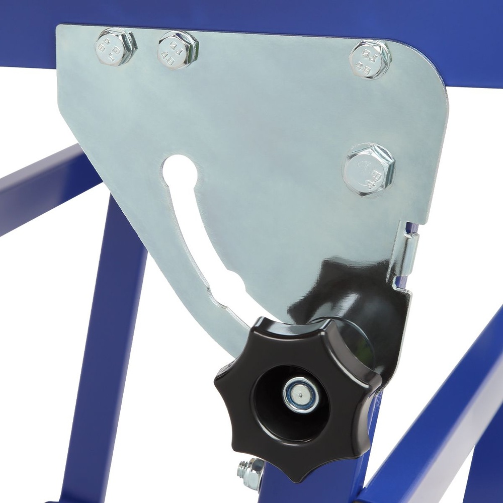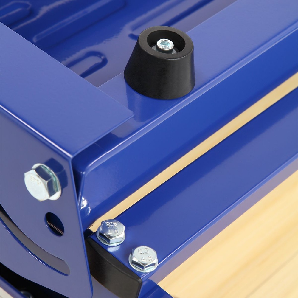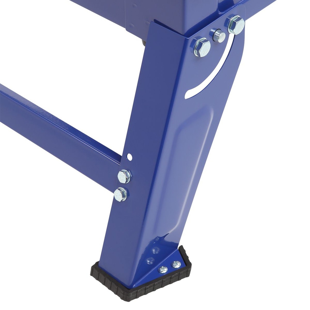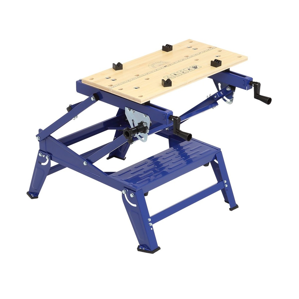 Верстак оснащен подвижными зажимами и отверстиями для струбцин, для надежной фиксации заготовки. Ширину столешницы можно легко изменить с помощью быстроразъемного механизма (ход — 170 мм).